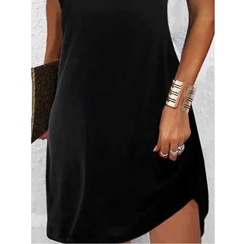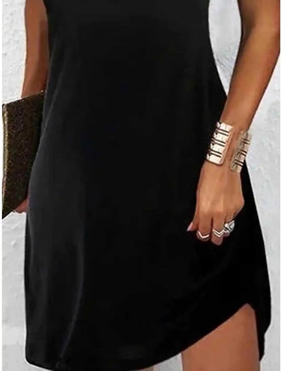FLONIFashion Solid Color Round Neck Sleeveless Simple Casual Short Mini Dress