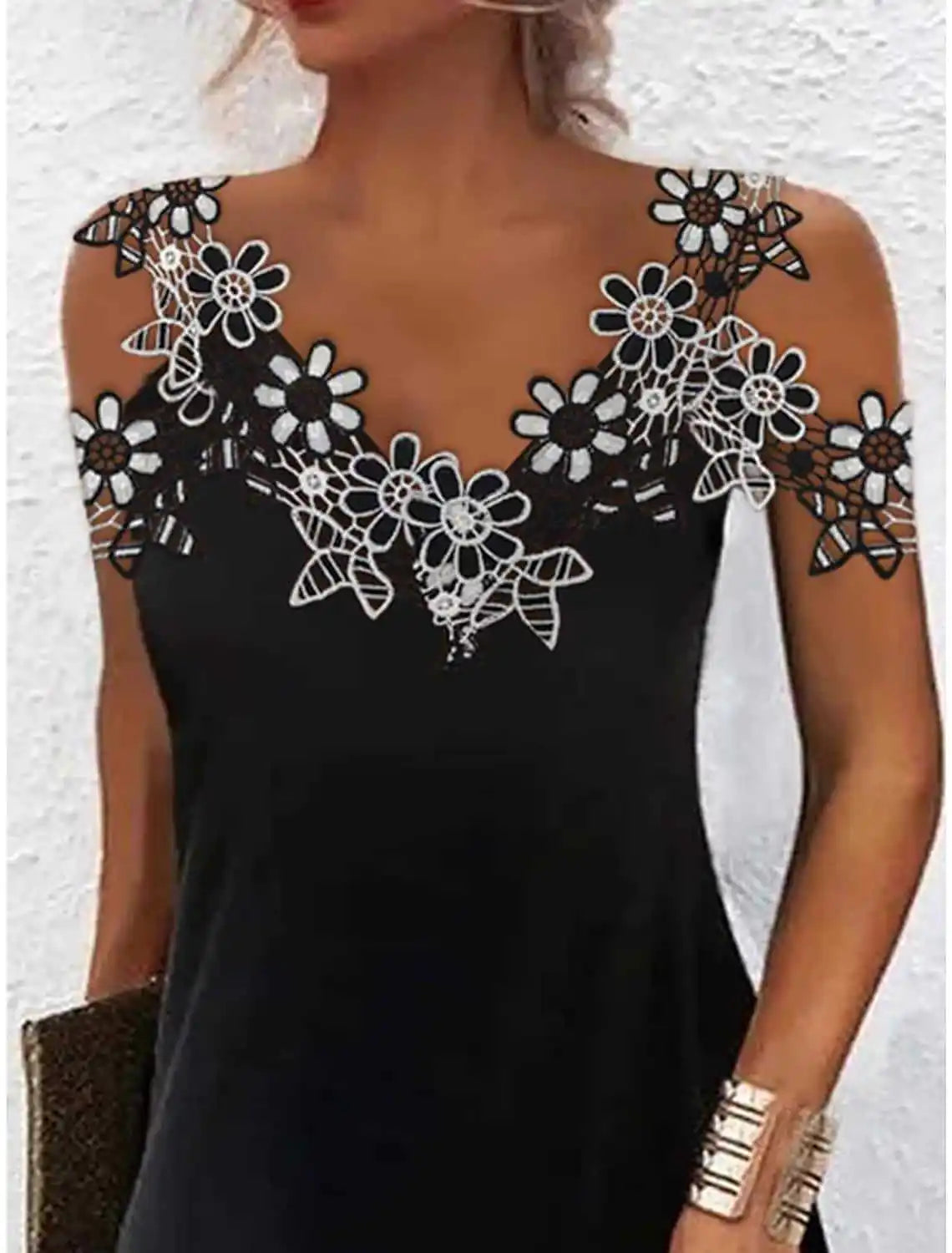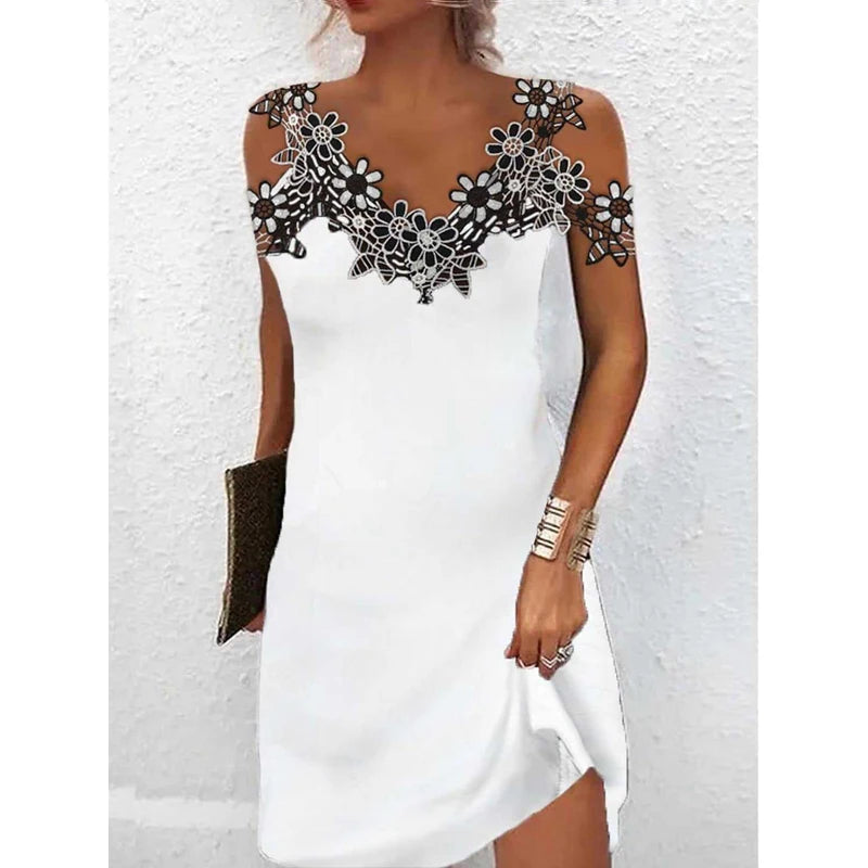FLONIFashion Resort Slim Waist V-Neck Sleeveless Hollow Embroidery Dress Wedding Dress Ladies Summer Dress Elegant Resort Dress Ladies Spring Dress Ladies Summer Dress