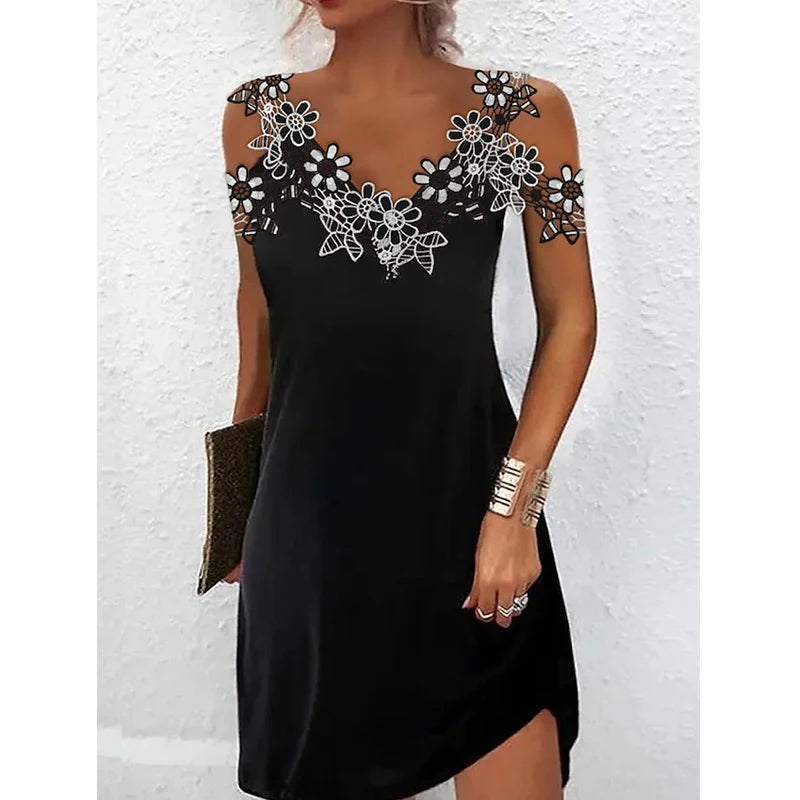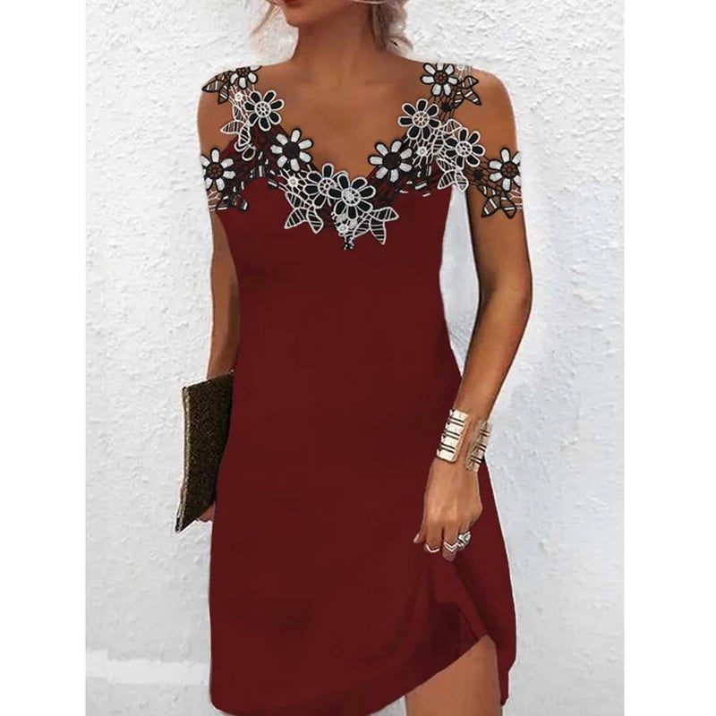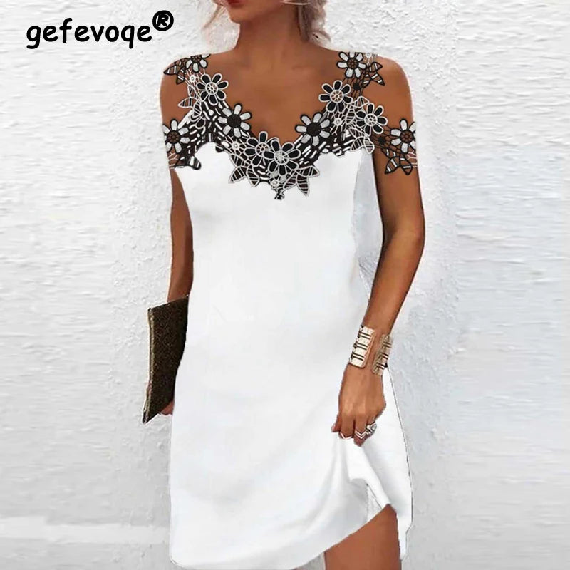 FLONIFY Backless Hollow Lace Patchwork Elegant Party Dresses