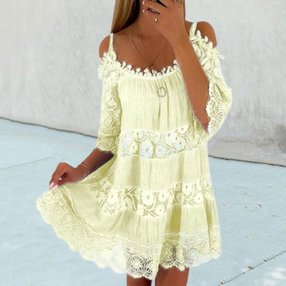FLONIFY Mini Dress Summer Solid Lace