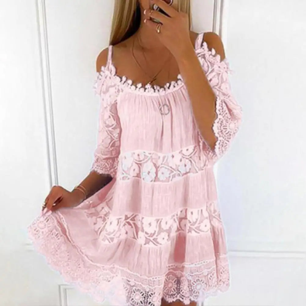 FLONIFY Crochet Lace Cold Shoulder Mini Dress