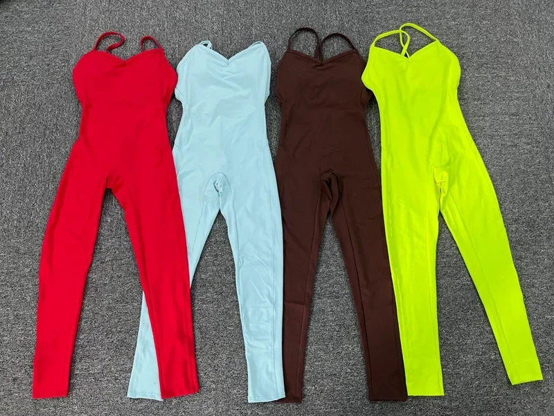 FLONIFY Sporty Jumpsuit Woman Sports Overalls 2024 Yoga Suit for Fitness Backless Gym Set Women Sportswear Tracksuit Black Red
