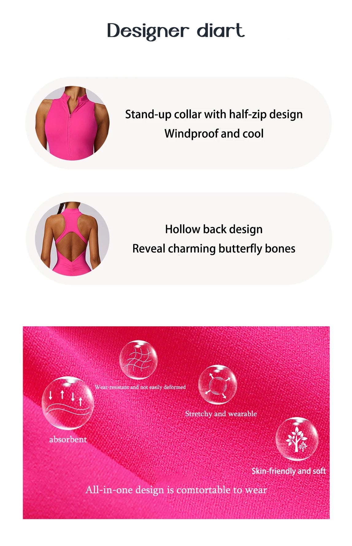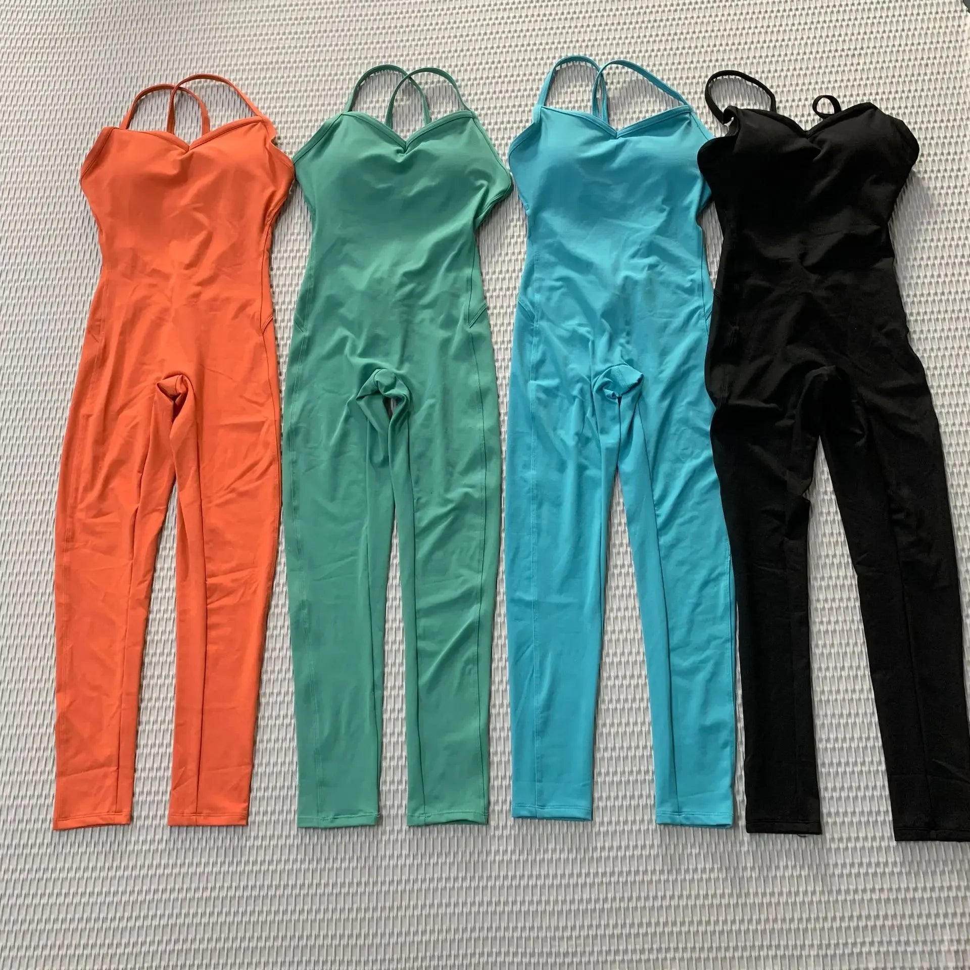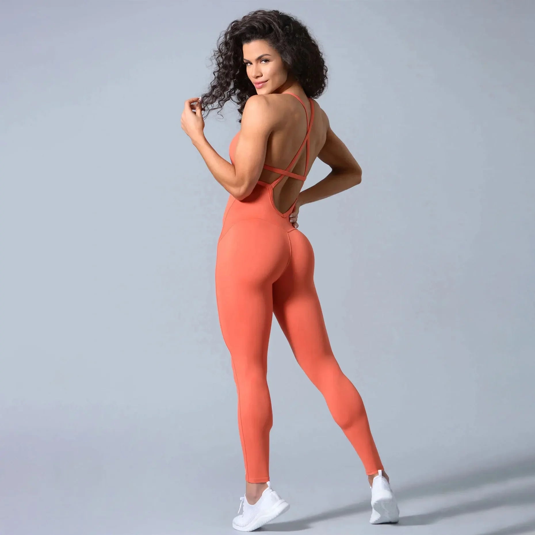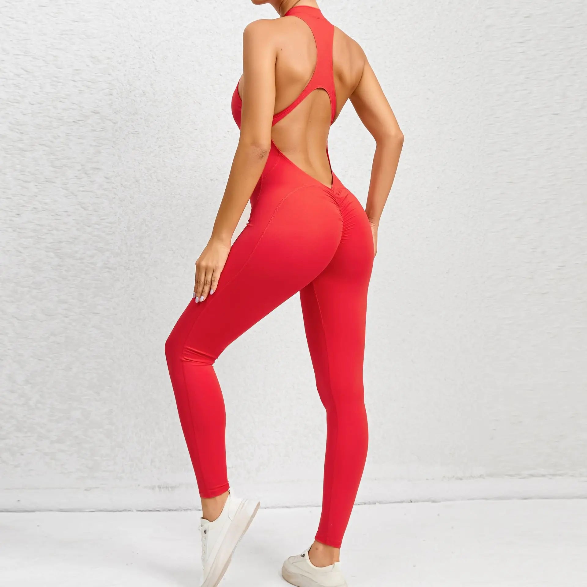 FLONIFY New V Back Scrunch Sports Jumpsuit Women Gym Rompers Sleeveless Sportswear Bodysuits Women Zipper One-Piece Suit Yoga Clothing
