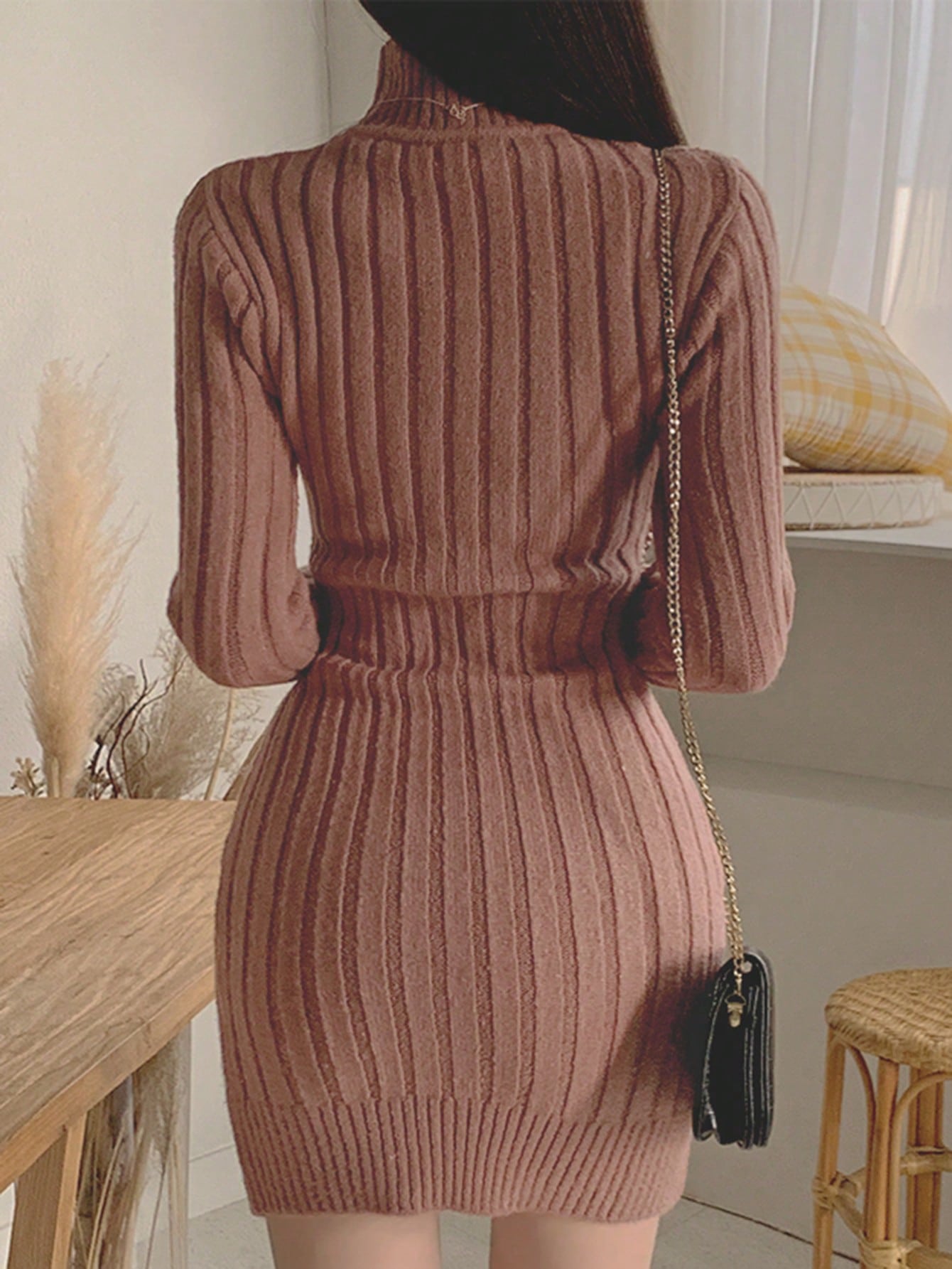 FLONIFY Ribbed Tight Knit Sweater Dress,