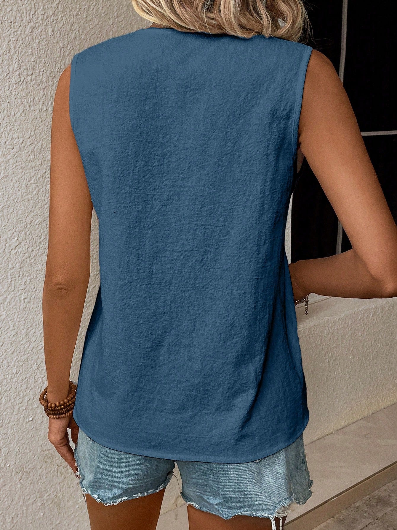 FLONIFY Lace Trim Sleeveless Casual Vacation Shirt In Solid Color