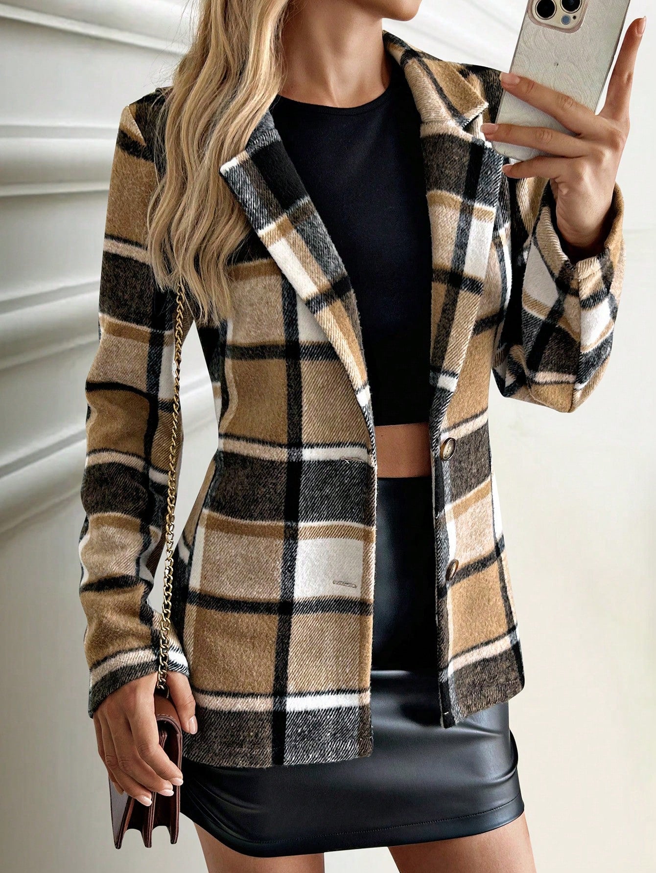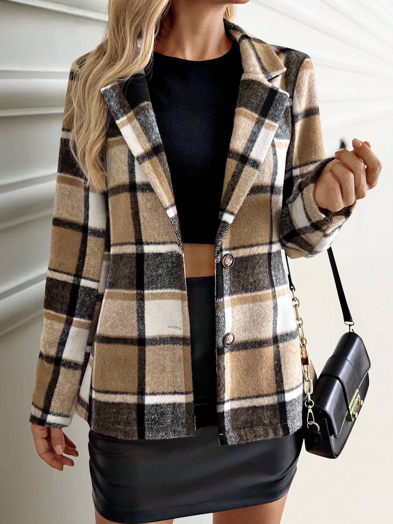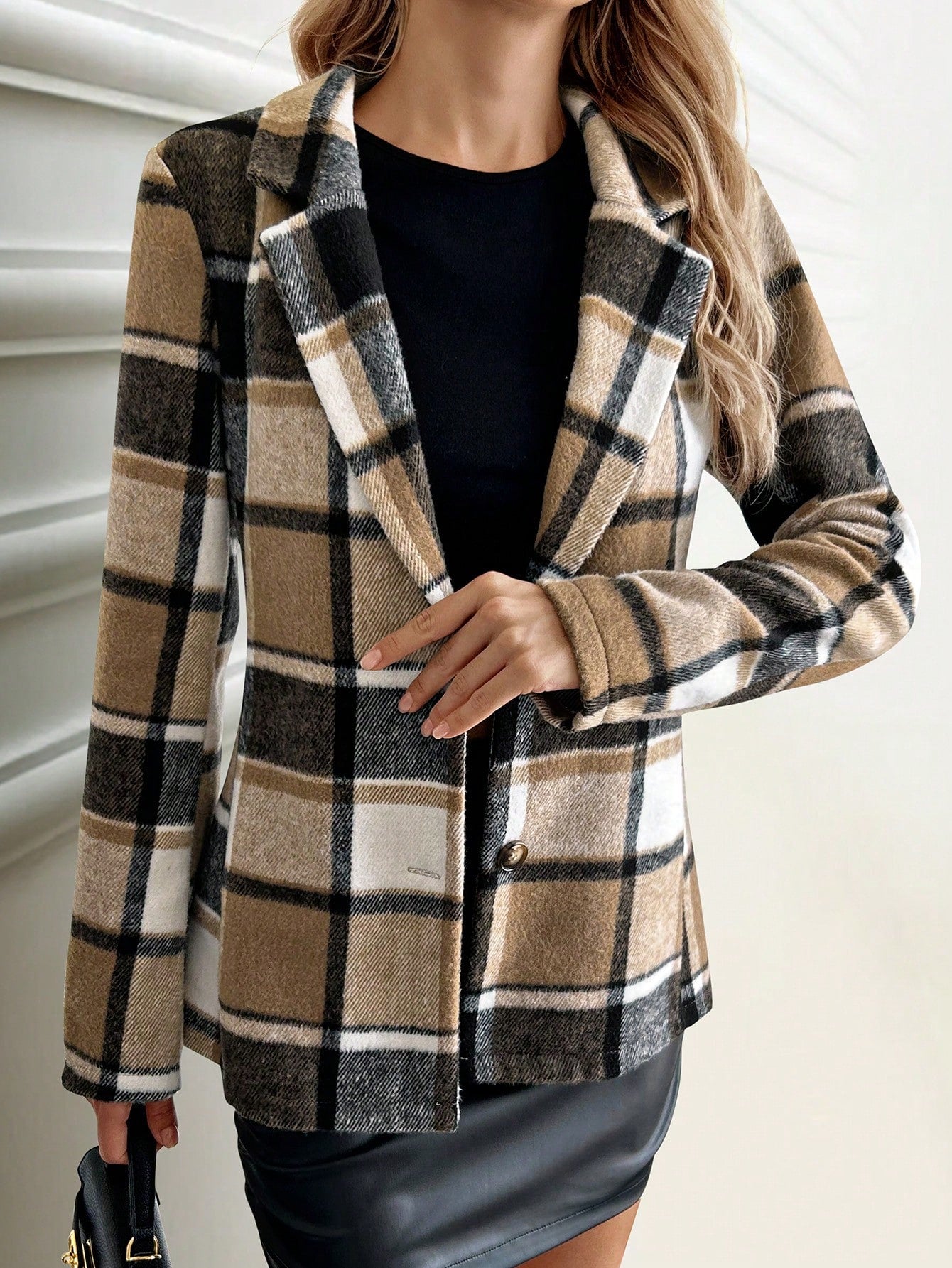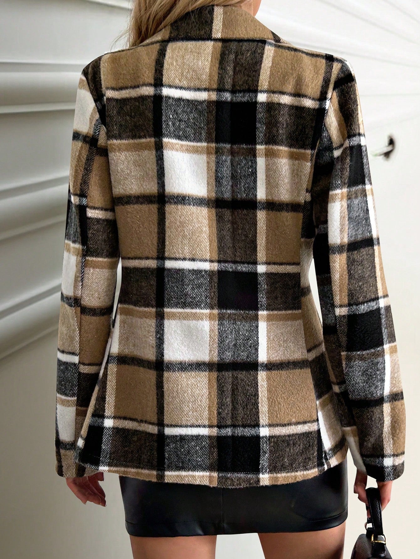 FLONIFY Plaid Printed Single-Breasted Long Sleeve Woolen Jacket, Suitable For Autumn And Winter