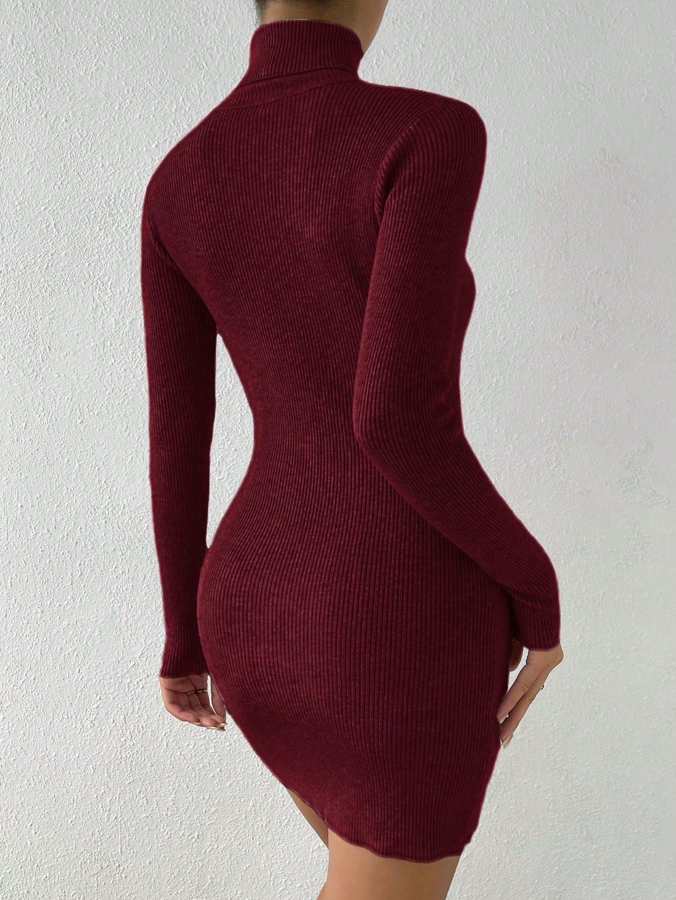 FLONIFY High Neck Long Sleeve Solid Color Minimalist Casual Short Sweater Dress
